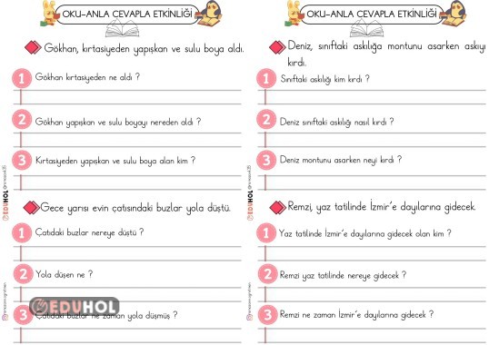 Uzun cümlelerden oluşan oku anla cevapla etkinliği sizlerle.
