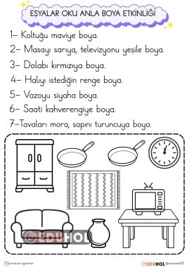 Çocukların okuduğunu anlamalarına yardımcı, çocukların severek yaptığı oku anla boya etkinliği sizlerle.