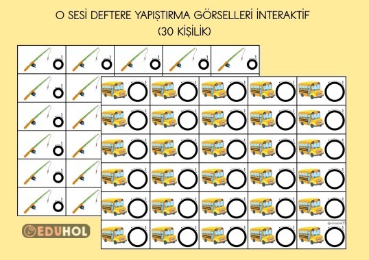 Küçük "o" ve büyük "O" sesi deftere yapıştırma görselleri. 30 kişilik.