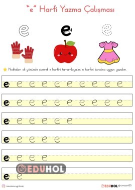 Küçük "e" harfi yazma çalışması. Etiketler: eharfi esesi yazma 1incisınıf ilkokul1 okuyaz türkçe güzelyazı harfler etkinlik