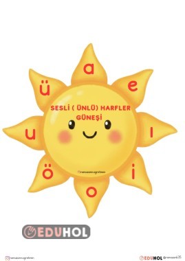 Sesli harfleri sınıfınıza asabileceğiniz harika güneş şeklinde pano sizlerle. 4 adet A4 kağıdı kullanarak rahatlıkla oluşturabilirsiniz.