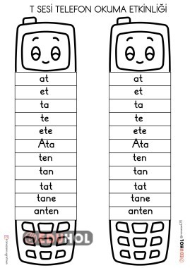 T sesi katlı telefon okuma etkinliği. Telefonu boyayıp kesiyoruz. Orta çizgilerden katlayıp akordiyon etkinlik şeklinde okumalarımızı yapabiliriz.