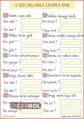 V sesi 10 tane cümleden oluşan oku anla cevapla etkinliği. (5n1k) Etiketler: vsesi vharfi vsesianlama 5n1k birincisınıf 1sınıf5n1k okuanla cevapla vharfi5n1k vsesi5n1k 1sınıfokuma 1incisınıf