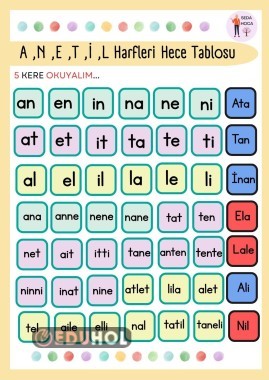 ANETİL Harfleri Hece ve Kelime Tablosu