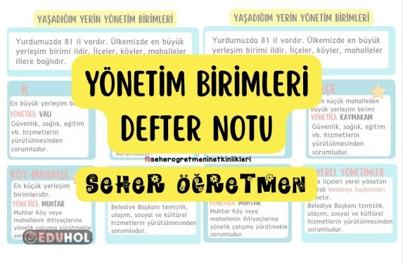 YÖNETİM BİRİMLERİ DEFTER NOTU
