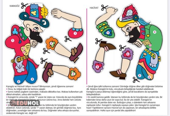 Hacivat ve Karagöz parçaları birleştirilerek kuklası yapılır