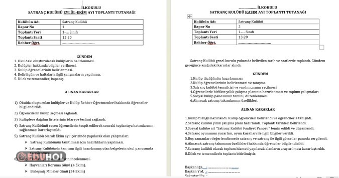 Satranç Kulübü Aylık Faatliyet Raporları