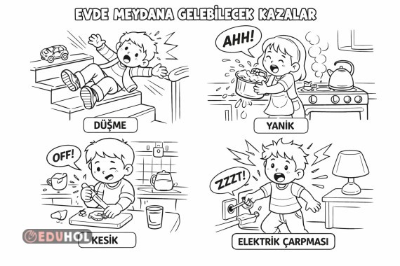 Evde meydana gelebilecek kazalar deftere yapıştırma