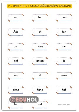 a-n-e-t okuma çalışması ve çalışma değerlendirme formu. 2 sayfa bir arada.