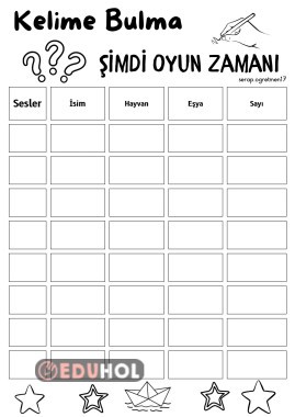 Seslerin bitmesiyle isim-eşya-hayvan-sayı yazmalı bir kelime bulma oyunu, 3 farklı şablon var. İkisinde ben en kolay bulunabilecek sesleri yazdım. Boş olarak da hazırladım. Keyifli çalışmalar 🌸 Beğenerek destek olmayı unutmayalım lütfen 🙏