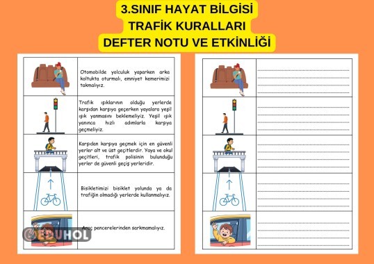3.SINIF HAYAT BİLGİSİ TRAFİK KURALLARI DEFTER NOTU VE ETKİNLİK