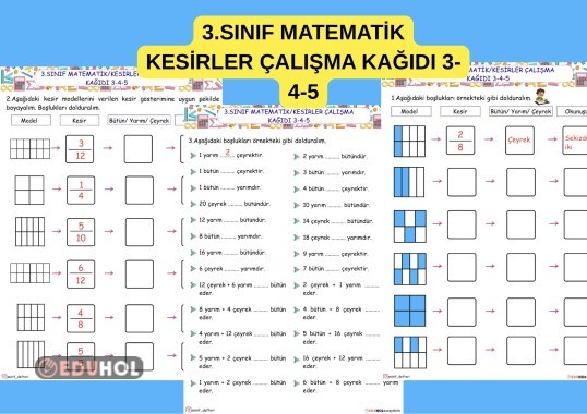 3.SINIF KESİRLER ETKİNLİK SAYFALARI 3-4-5 / BÜTÜN YARIM ÇEYREK ÇALIŞMA KAĞIDI