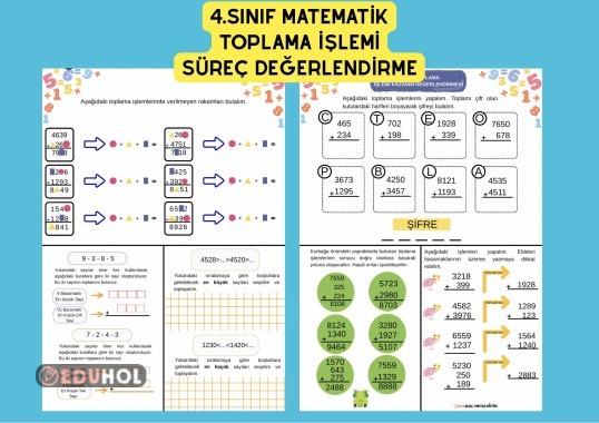 4.SINIF MATEMATİK TOPLAMA İŞLEMİ ÇALIŞMA KAĞIDI / SÜREÇ DEĞERLENDİRME