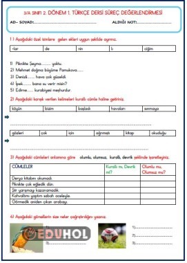 3. sınıf 2. dönem 1. Türkçe Değerlendirmesi