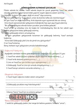 Filistin Farkındalık Etkinlikleri 'Gökkuşağının Altındaki Çocuklar' Okuma Anlama Metni