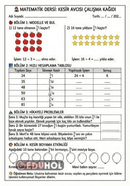 BİR ÇOKLUĞUN BİRİM KESİR KADARINI BULMA VE PROBLEMLER 2 SAYFA