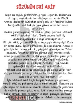 Mehmet Akif Ersoy Okuma Anlama Çalışması