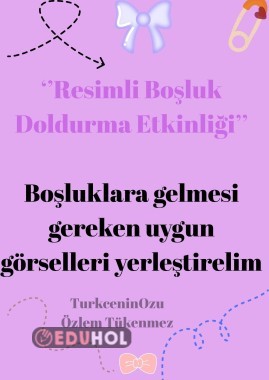 Boşluklara uygun resimleri yerleştiriyoruz boşlukları doldururken keyif alıyoruz. Her sınıf düzeyine uygundur.