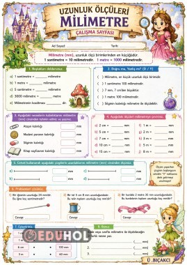4. sınıf öğrencilerimizle milimetre (mm) konusunu eğlenceli ve masalsı bir çalışma sayfası ile pekiştiriyoruz 🧚♀️