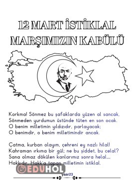 12 MART İSTİKLAL MARŞIMIZIN KABÜLÜ OKUMA BOYAMA