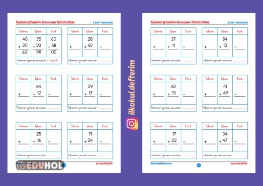 - 2.sınıf öğrencilerinin toplama işlemi sonucunu tahmin etmesi ve tahminini gerçek sonuçla karşılaştırması amaçlanmıştır. Etiketler: matematik toplama tahmin işlem