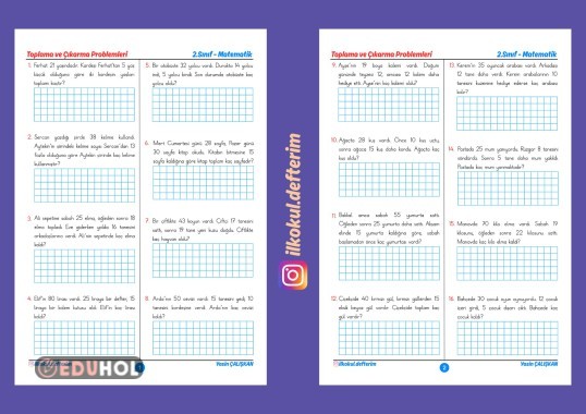 - 2.Sınıf öğrencilerinin yapabilecekleri toplama ve çıkarma işlemi gerektiren 16 adet problemden oluşmaktadır. Etiketler: matematik problem toplama çıkarma