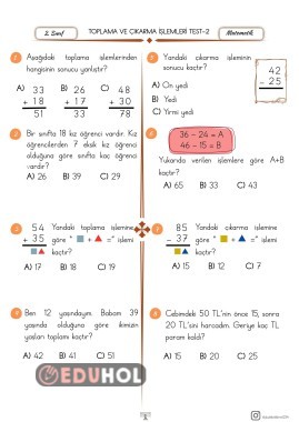 TOPLAMA VE ÇIKARMA İŞLEMLERİ TEST-2