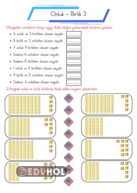 Beğenmeyi ve yorum atmayı ihmal etmeyiniz. Destekleriniz benim için çok önemli. İyi çalışmalar. Etiketler: ikinci sınıf matematik onluk birlik