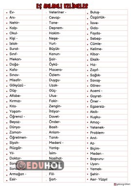 EŞ ANLAMLI KELİMELER ETKİNLİK
