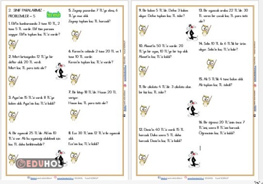 2. SINIF MATEMATİK PARALARIMIZ PROBLEMLER 5 ( YENİ NESİL SORULAR)