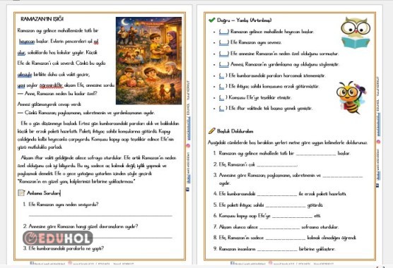 2. SINIF RAMAZAN'IN IŞIĞI OKUMA ANLAMA VE DEĞERLENDİRME ETKİNLİĞİ