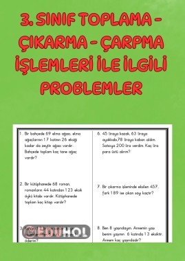 3. SINIF TOPLAMA-ÇIKARMA-ÇARPMA İLE İLGİLİ PROBLEMLER
