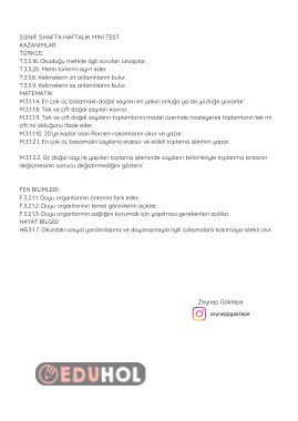 Çok özenerek hazırladığım 3. sınıf 5. hafta konularını içeren mini testim..