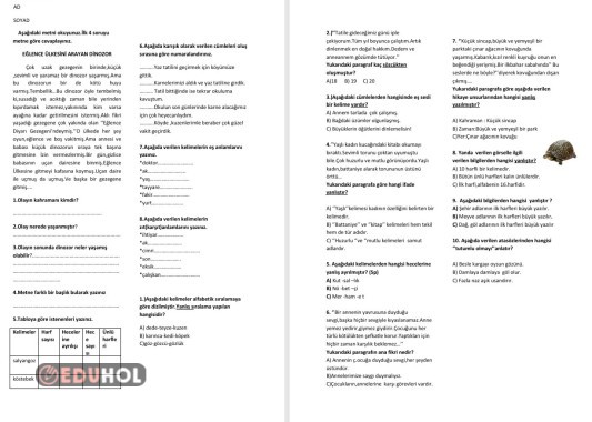 3.Sınıf Türkçe Değerlendirme (kolay seviye)