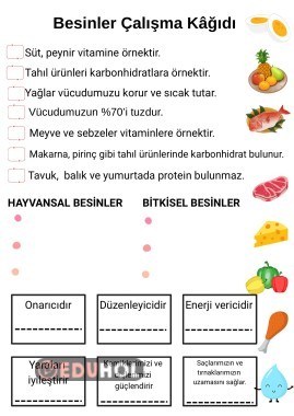 4.SINIF BESİNLER ÇALIŞMA KAĞIDI / Konu Tekrarı
