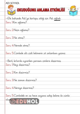 OKUDUĞUNU ANLAMA ETKİNLİKLERİ-6-
