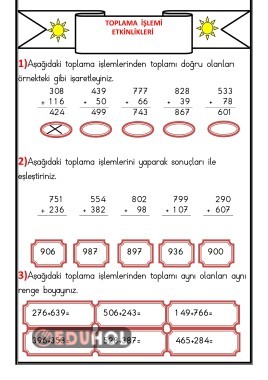 TOPLAMA İŞLEMİ ETKİNLİKLERİ