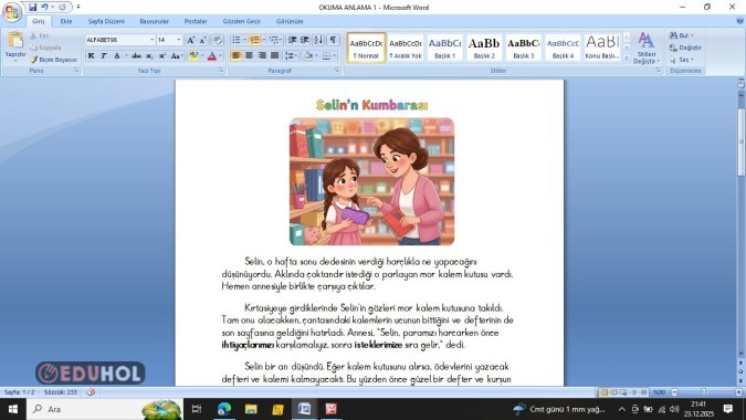 PARAMIZI HARCARKEN KONULU OKUMA NALMA METNİ
