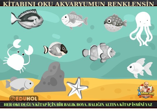 📖➡️🐠 Okudukça boyuyor, boyadıkça okuma sevgisi artıyor.