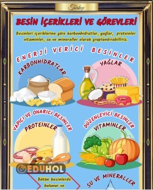 Etiketler: fen bilimleri afiş poster besinler içerikleri karbonhidratlar proteinler yağlar vitaminler suve