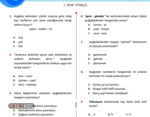 TÜRKÇE 10 SORULUK TEST-1