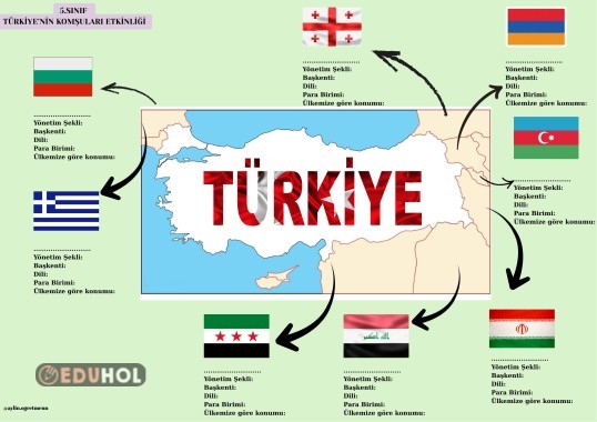 ÜLKEMİZE KOMŞU ÜLKELERLE İLGİLİ DİLSİZ HARİTA ÇALIŞMASI. ÜLKELERLE İLGİLİ ÖZELLİKLERİ DE ÖĞRENCİLER DOLDURABİLİR. Etiketler: ülkeler komşularımız sosyalbilgiler 5sınıf maarif