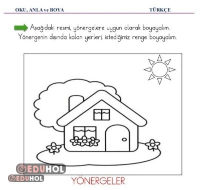 OKU, ANLA ve BOYA Aşağıdaki resmi, yönergelere uygun olarak boyayalım. Yönergenin dışında kalan yerleri, istediğimiz renge boyayalım.
