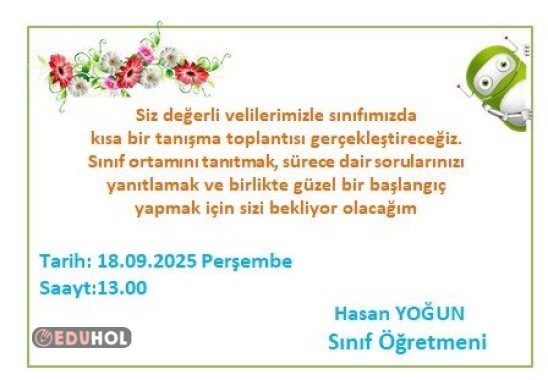 Veli Toplantı Davetiyesi Word (Düzenlenebilir)