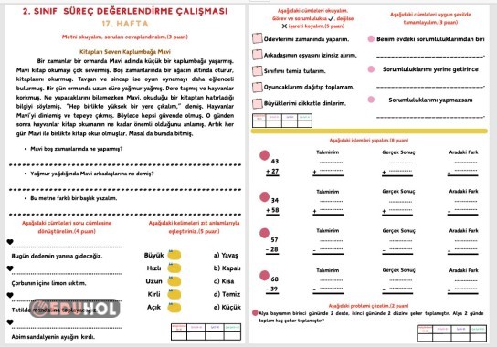 2. SINIF SÜREÇ DEĞERLENDİRME ÇALIŞMASI 17.HAFTA