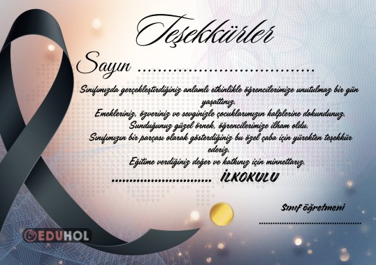 Ailelerin sınıf için yaptıkları etlinlik için teşekkür belgesi