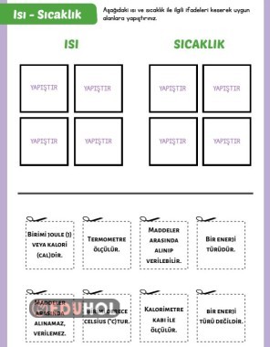 Isı ve Sıcaklık - Kes Yapıştır Etkinlik