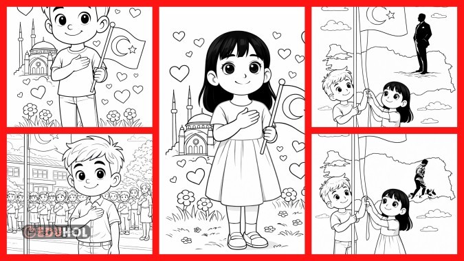 Okulda ilk gün Bayrak Sevgisi Boyama sayfaları