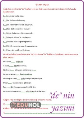 "DE" NİN YAZIMI ÇALIŞMA SAYFASI