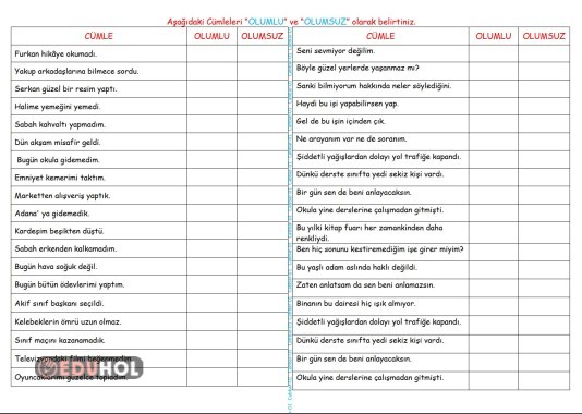 3. SINIF TÜRKÇE ( Olumlu - Olumsuz Cümle )-1